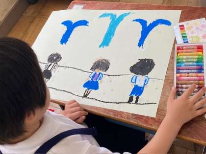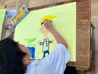 アサガオの観察や、大阪・関西万博へ行ったことなど、学校でしたことを思い出しながら描きました。