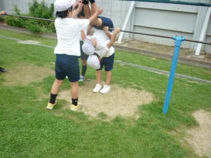 さかあがりの練習をしているチームもありました。