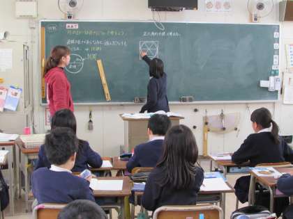 5年生の学習の様子です。算数で、直径と円周の長さの関係について、考えています。