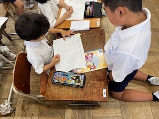 ミニ千本タイムと称して、6年生が先生となって2年生の学習の丸付けをしました。