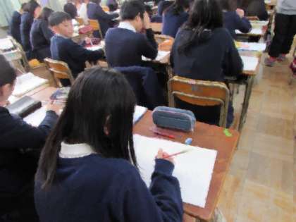 6年生の学習の様子です。1組は、詩を作っています。題材を選び、たくさんの詩を生み出していきました。