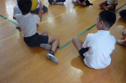今日の集会は「ゴロゴロどっかん」でした。 なかよし活動班に分かれて楽しく活動することができました。