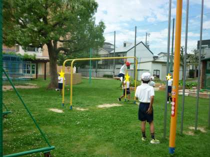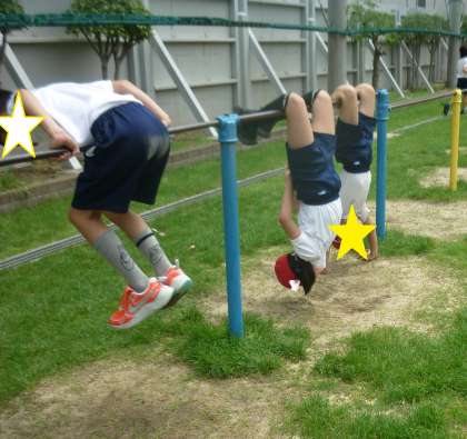 鉄棒、うんてい、のぼりぼう、大なわの練習をしました。