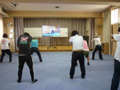 水泳で使うアヒルの体操や千本アクアの研修をしました。