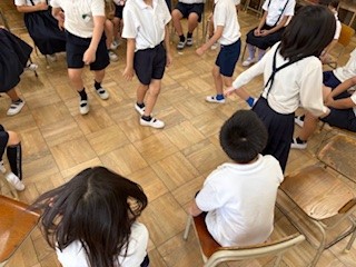 みんな遊びでは、「王様じゃんけん」と「なんでもバスケット」をしました。
