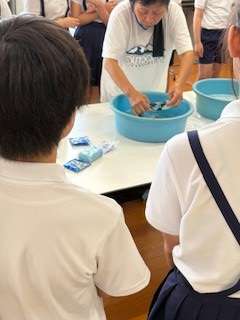 つまみ洗い、もみ洗いなど実際に体験して、洗濯する大変さを知ることができました。
