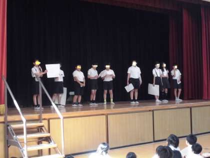 児童集会で栽培委員会の発表がありました。5年生になり、委員会活動も頑張っています。