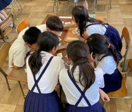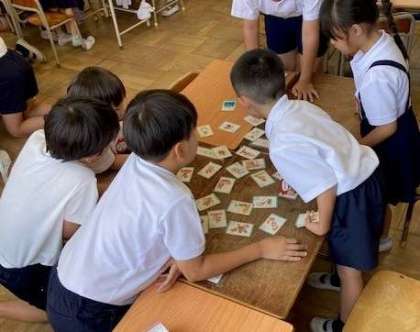 6年生と一緒にかるたをして遊びました。給食や掃除、なかよし班活動など、さまざまな場面でお世話になってます!