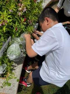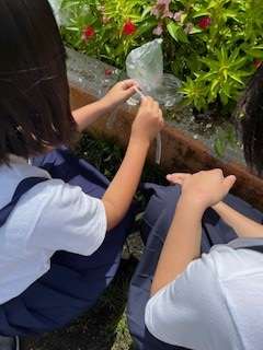 葉まで運ばれた水は、その後どうなるのか実験をしました。