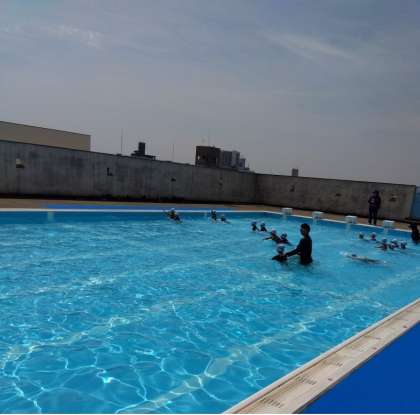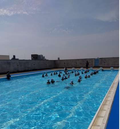 水の中を歩いたり走ったりし、学校のプールにも慣れてきました。