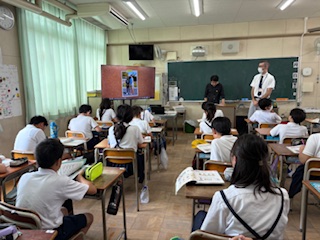 外国の子どもの一日の様子のスピーチビデオを見て、話していることをメモしました。