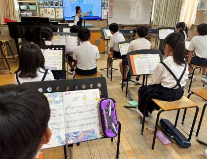 4年生は音楽で「プパポ」を歌いました。 楽しくリズムに合わせて歌うことができました。