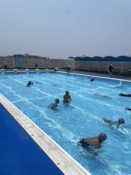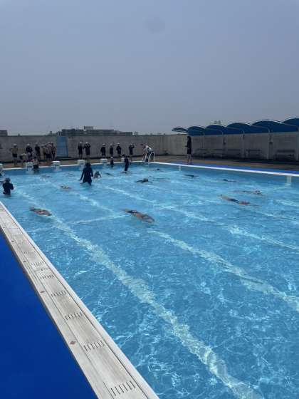 プールに響くリズムに合わせて、けのびをしています。体がまっすぐになり、とても上手にできています。