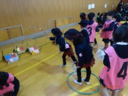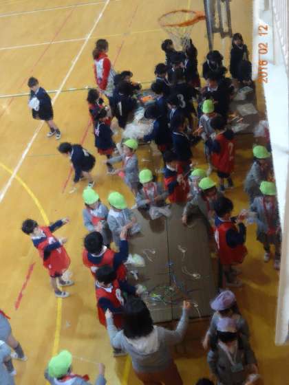 1年生の手作りおもちゃで、楽しく遊ぶことができました。1年生の子どもたちは「たいへんだったけど、楽しかった。」「弟ができたみたいで、よかった。」と、にこにこ笑顔でした。