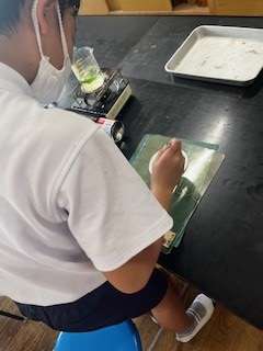 日光が当たっている葉と、当たっていない葉では、でんぷんの量がどれだけ違うのかを実験しました。