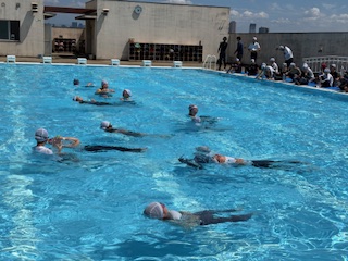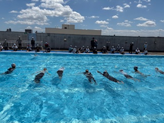 実際水の事故に巻き込まれたら顔から落ちるので、伏し浮きから背浮きにかわる練習をしたり、ペットボトルを持って浮く練習をしたりしました。