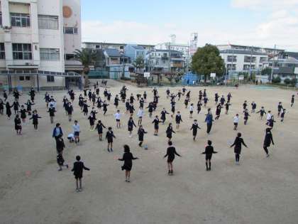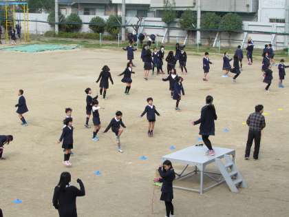 体育委員会によるなわとび週間が、スタートしました。今週と来週の20分休み(2時間目と3時間目の間)に、高学年と低学年が、交互になわとび運動を行います。初日の今日は、高学年の日です。できるだけ、続けて長く跳ぶよう、頑張っています。
