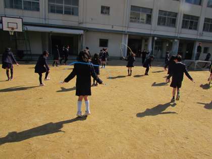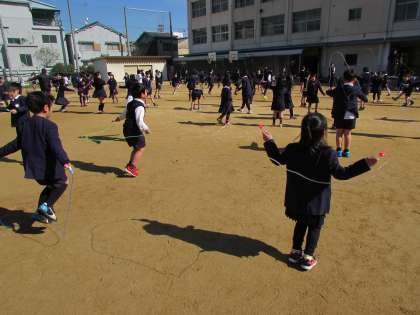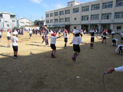 昨日は雨のため、運動場が使えず、高学年のなわとび週間は中止となってしまいました。今日は良い天気となり、20分休みに1・2・3年生が元気よくなわとびに取り組みました。