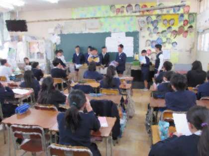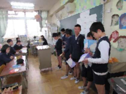 2組は、明日の土曜授業で行う発表会の練習をしています(画像中・下)。