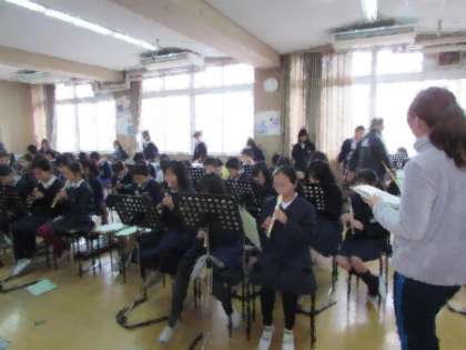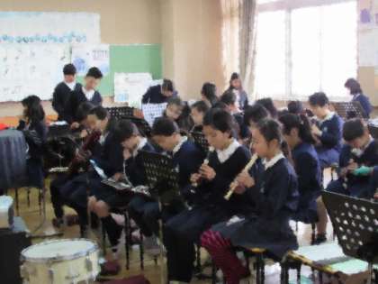 5年生の学習の様子をご紹介します。5年生が音楽室で、合奏の練習をしています。3月1日に行う「卒業おめでとう集会」で、演奏します。