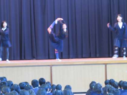 木曜日の朝、児童集会の様子をご紹介します。今日の児童集会は、ダンスクラブの発表でした。ここまで練習してきたダンスを、グループごとに発表しました。ダンスがとても素晴らしく、大きな拍手が起こりました。