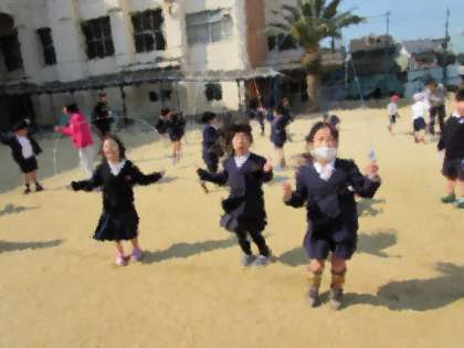 2週間、なわとび週間とし、子どもたちのなわとびに対する意欲が高まりました。休み時間にもなわとびをする子どもが増えました。継続して取り組める体力づくりとして、今後も日常的に続けていきたいと考えています。