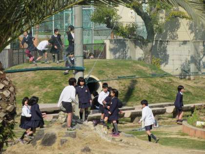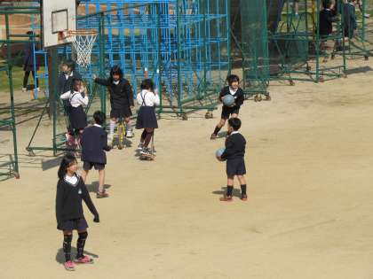 2時間目の後、20分休憩の運動場の様子です。子どもたちが元気に遊んでいます。