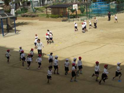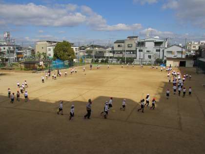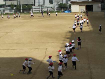 1年生の体育の様子をご紹介します。元気に5分間走に挑んでいます。