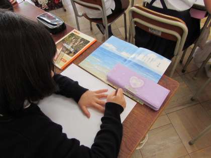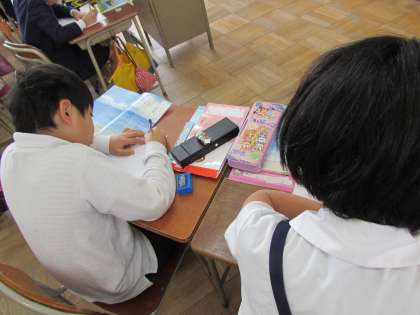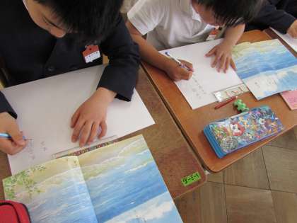 4年生の学習の様子を紹介します。国語で、詩の視写をしています。「水平線」という詩を、丁寧に書きました。