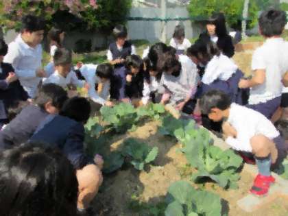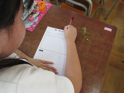 4年生が理科の学習で、学習園に行き、春の草花を観察しました。採取した花は教室に持ち帰り、スケッチをし、図鑑などで名前を調べました。