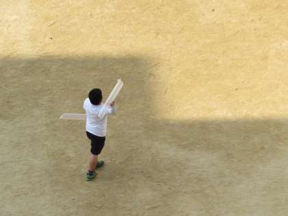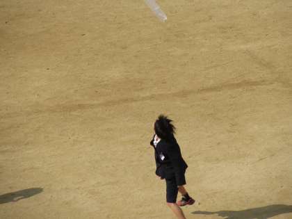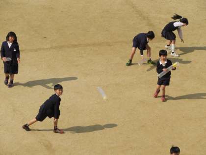 3年生の図画工作の学習です。傘を入れるビニル袋を膨らませ、口の部分を縛って、空へと飛ばしました。しっかりと空気を入れて膨らませると、風に乗って飛んでいきました。