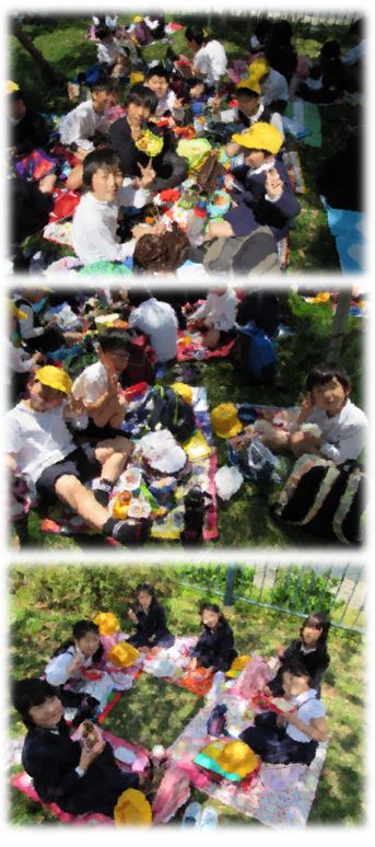 お昼ご飯は、芝生公園で食べました。少し汗ばむほどの陽気で、皆元気に過ごすことができました。