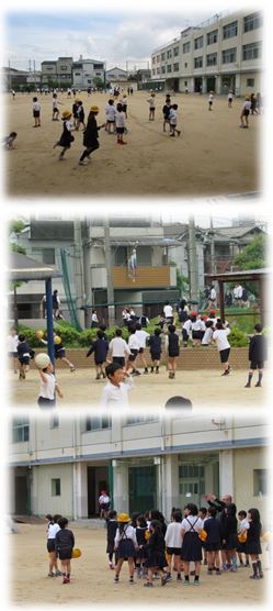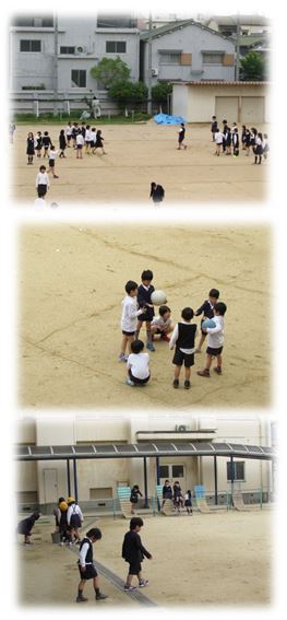 昨夜降った雨のため、今朝、運動場には水たまりがいくつもありました。そのあと、土を入れて水たまりを埋める作業をし、2時間目が終わった後には運動場で遊べるようになりました。運動場で遊べるようになったことを知って、子どもたちが教室から飛び出していきました。