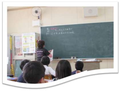 3年生の学習の様子を御紹介します。算数で、かけ算九九を使った計算について学習しています。今日は、「12×4」の計算の仕方を考えました。子どもたちは、これまでに学習した九九を使うためには「かけられる数」の「12」を分解すれば良いと考えました。12を9と3に分解して「9×4」と「3×4」を計算して、その答えを足すと48になります。この答えが「12+12+12+12」と同じになることから、「12×4=48」で正しいことが確かめられました。