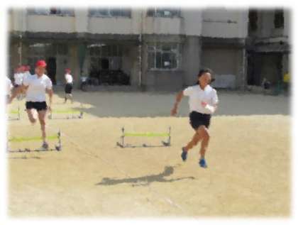 6年生の学習の様子をご紹介します。6年生が体育で、ハードルの学習をしています。低いハードルで、跳ぶときの姿勢を意識しながら、取り組みました。