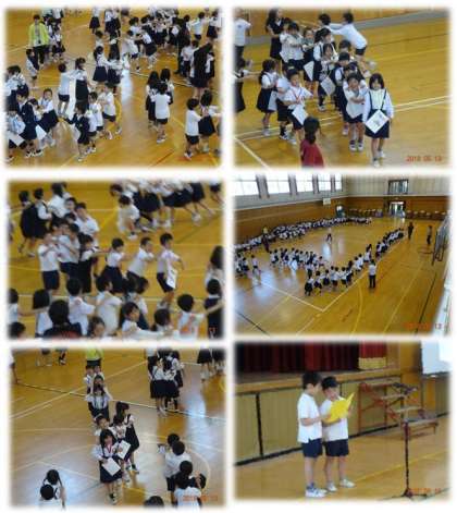 3時間目には体育館に集まり、1年生と2年生で一緒にじゃんけん列車をして遊びました。これから一緒に、たくさん楽しいことができるといいですね。