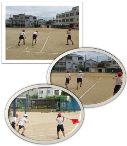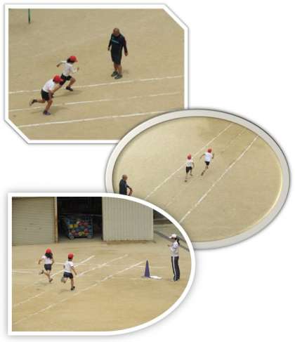 雨で延期していた体力テストを、本日から行っていきます。今日も5年生(画像上3枚)や4年生(画像下3枚)が、50m走を行いました。
