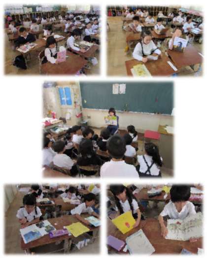 水曜日の朝、読書タイムの様子です。1年生は、自分で選んだ本を静かに読んだり、先生に読み聞かせをしてもらったりして、過ごしています。