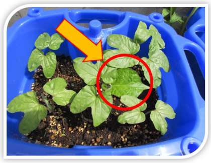 1年生は一人一鉢ずつ、アサガオを育てています。たくさん双葉が出ていましたが、いくつかの鉢では本葉が出ているものもありました。