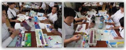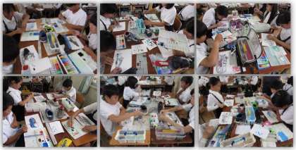 6年生は、自分の靴を描いています。靴のデザインや、紐の様子もしっかりと観察し、色づくりを工夫して描いています。