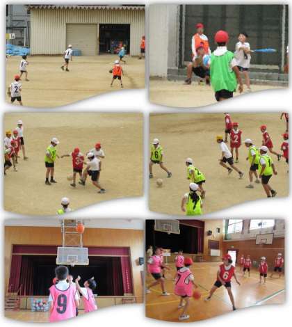 スポーツクラブは、スポーツクラブ1、スポーツクラブ2、スポーツクラブ3と分かれ、体育館と運動場で活動をしています。今日は、運動場で野球(画像上)とサッカー(画像中)、体育館ではバスケットボールをしていました(画像下)。