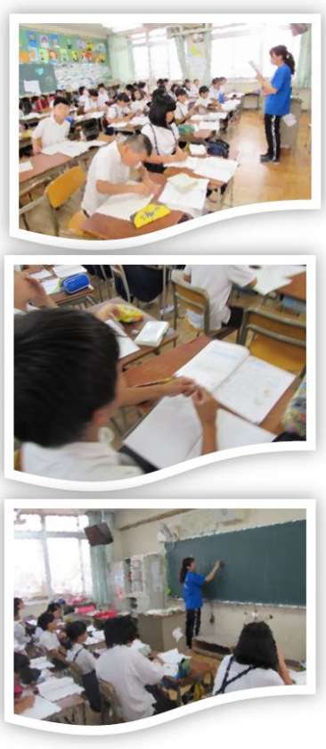 6年生の学習の様子をご紹介します。算数で、分数のかけ算の練習問題をしています。
