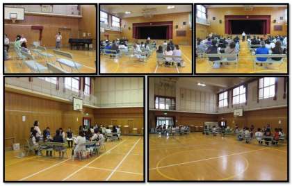 本日4時より、講堂でPTA委員総会を行いました。会長あいさつ、PTA全委員会の組織と各委員会の紹介、学校長あいさつ、各委員会進行や会場などの連絡(画像上3枚)の後、各委員会に分かれて、分科会が行われました(画像下2枚)。
