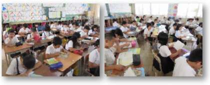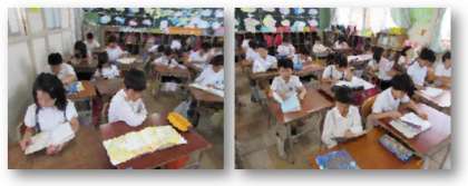 3年生(画像上)、4年生(画像下)も、自分で選んだ本を静かに読んでいます。