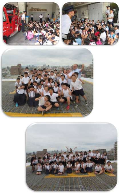 初めに、大阪市の消防について、ビデオを見ました。その後、屋上に上がり、大阪市の街の様子を見学しました。