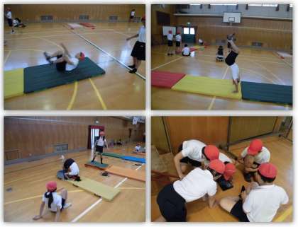 6年生の体育の学習の様子をご紹介します。マット運動の様子を、互いにタブレットで撮影しました。そして、自分ではわからない、自分のフォームを確認していきました。