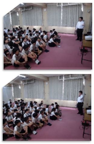 本日の3時間目、西成警察署の少年係の方にお越しいただき、6年生の非行防止教室を行いました。