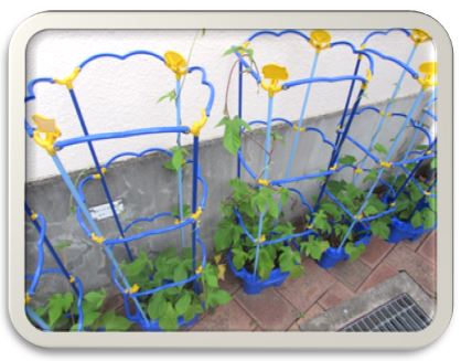 1年生のアサガオが、ぐんぐん背を伸ばしてきたので、6月17日(金)、アサガオの鉢に支柱をたてました。今日、見てみますと、既に支柱に巻きついているものもありました。これから、気温が上がり、雨の日も多くなり、成長がますます楽しみです。