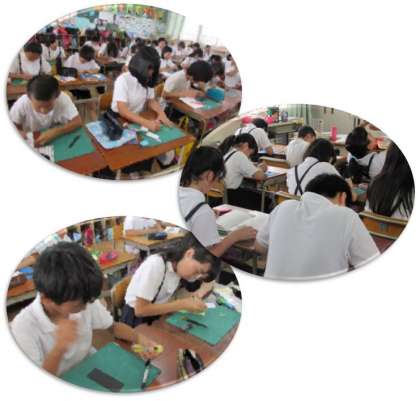 6月20日(月) 2組は、図画工作の学習です。今日は、読書の時に使うしおりを作っています。