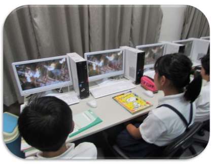 6年生の学習の様子をご紹介します。パソコン室で、NHK for schoolを見ています。今日は、社会科の歴史の番組で「源平の戦い」を視聴しました。